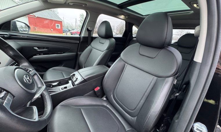 The Hyundai Tucson is bigger, stronger, and better-looking than ever. Its spacious interior accommodates five, with premium features that make it as comfortable as your living room. Every Tucson comes with a 2.5-litre inline-four that produces 187 horsepower. An eight-speed automatic transmission delivers all that power to the ground through your HTRAC Active All-Wheel Drive. Inside the cabin, your Tucson coddles you with features like a panoramic sunroof and heated seats. Fold down the rear seat for over 80 cubic feet of cargo space—and access is easy with the power liftgate. Apple CarPlay and Android Auto integration keep you connected wherever you go. The Hyundai Tucson. It’s ready for adventure.