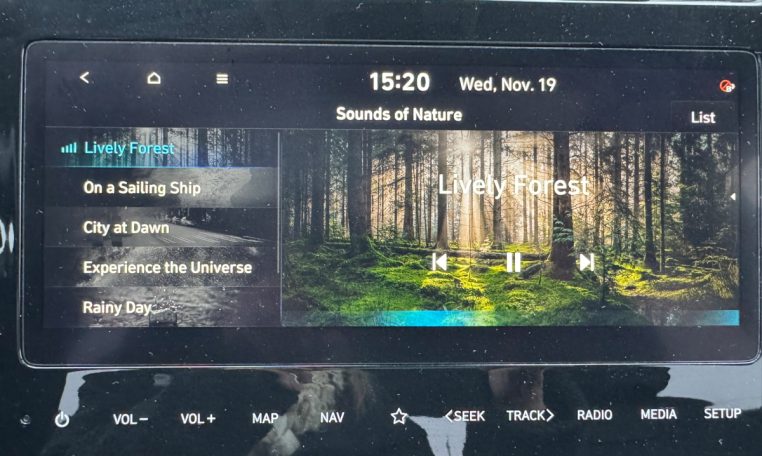 The 2024 Hyundai Tucson offers a built-in “Sounds of Nature” feature in its infotainment system, allowing you to play calming sounds like rain or ocean waves for a relaxing drive, accessed via the Media menu on the touchscreen to select from curated soundtracks, with options to customize, pause, or skip tracks for an immersive auditory experience. Many owners use it to decompress in traffic or help children sleep. This feature adds to the Tucson’s comfort-focused design, providing a quiet and pleasant environment for passengers.