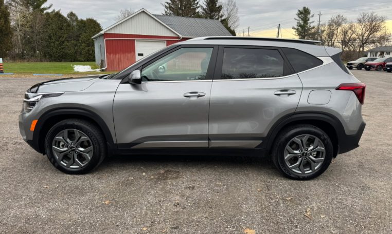 The 2025 Kia Seltos EX with “4x” (meaning All-Wheel Drive, or AWD) is a popular compact SUV trim offering a blend of value, tech, and capability, featuring the 2.0L engine with an Intelligent Variable Transmission (IVT), leatherette seats, a large dual-screen setup (10.25″ gauge/infotainment), wireless Apple CarPlay/Android Auto, heated front seats, sunroof, remote start, and advanced safety features like Forward Collision-Avoidance Assist and Blind-Spot Monitoring. It provides enhanced traction with AWD and a locking center differential, making it practical for various conditions while retaining comfort and modern tech.