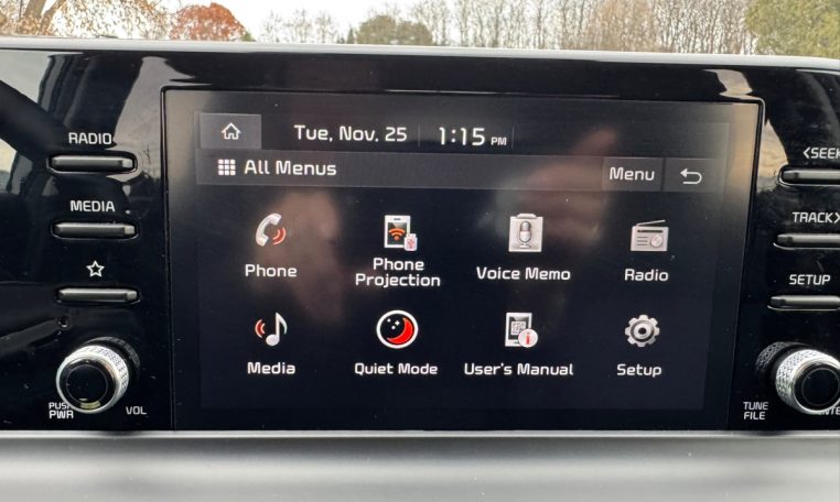 Roomy Interior – A clean, classy interior design greets everyone who steps into the Seltos, enhanced by a dashboard unit that houses a 10.25” touchscreen. Kia says it has improved the cabin’s materials and finishes for 2025. That said, we never had any issues with the quality of the materials. And we always liked the outward vision, plus the comfort and space. Our enthusiasm didn’t dim when we sat in the back. Rear legroom of 38 inches is generous for the class. The rear air vents are another positive, for humans and dogs alike.